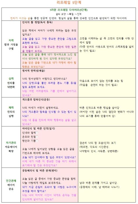 1) 5차원 리프레임 다이어리 5단계까지 완성하고 평생 동안 실행할 사람들