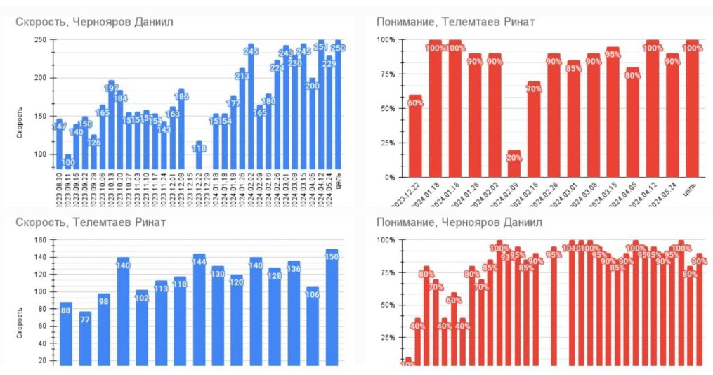 아르쬼 아구레예프는 잘하고 있고 성적도 좋으며 거의 모든 과목이 녹색입니다(좋은 점수-녹색) . 다니엘은 2 학기부터 공부하고 있으며 성적도 좋습니다. 디마와 아르템 가마르 텔리는 축구에 등록했으며 모범적이라고 많은 칭찬을 받고있습니다. 아이들이 변하고 있어요. 감사합니다. 물론 기복도 있습니다. 올해 디아에서 아이들을 가르치신 것에 대해 매우 감사 드리며, 여러분은 그들에게 많은 투자를 해주셨고, 자기관리력도 그리고 많은 좋은 성격들도 키워줘서 감사드립니다.“