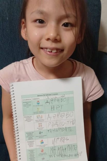 수업하는 학생은 초등 4학년부터 11학년까지 7명이다. 학년 차이만큼 한국어 사용 능력에도 차이가 있다. 한국어가 서툴렀던 학생은 한국어로 말하고 쓰는 것이 향상되고 있음을 스스로 느낀다. 학생들의 눈높이를 다 맞출 수 없지만 5차원 전면교육은 지력의 향상만을 위한 것이 아니기 때문에 학생들을 섬세하게 살피며 수업을 한다.